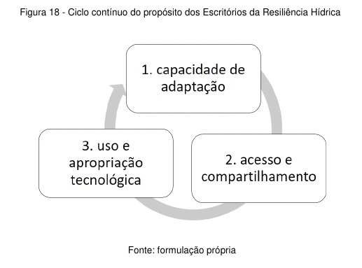 O ciclo contínuo dos Escritórios da Resiliência Hídrica são as tarefas e iniciativas de produção do cotidiano nos ambientes, específicas para cada pessoa, em seus grupos ou no enxame das multidões.